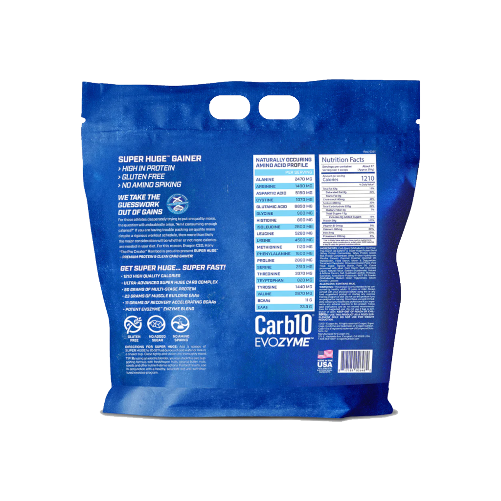 Super Huge Gainer de Evogen es un poderoso suplemento de aumento de masa diseñado para ayudarte a alcanzar tus objetivos de volumen muscular. Formulado con una mezcla de proteínas de alta calidad, carbohidratos complejos y grasas saludables, este ganador de masa te proporciona los nutrientes esenciales para apoyar el crecimiento muscular y la recuperación después de entrenamientos intensos.
